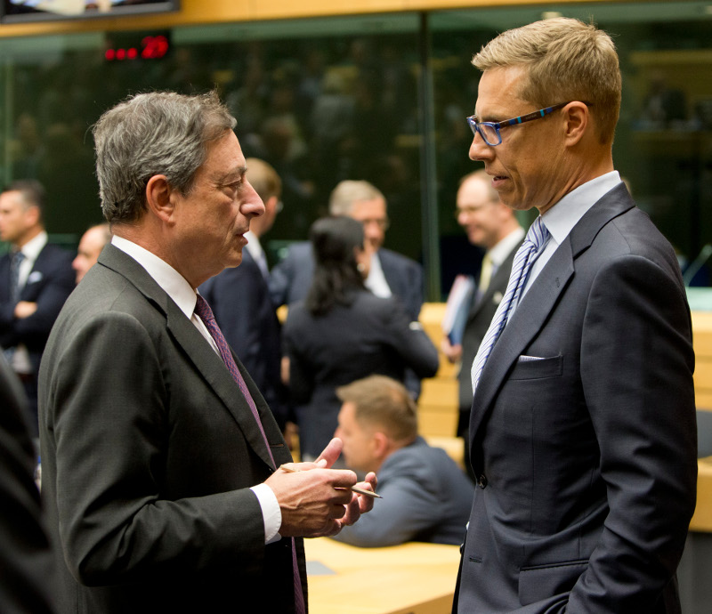 Ο Μάριο Ντράγκι της ΕΚΤ με τον Φινλανδό ΥΠΟΙΚ Αλεξάντερ Στουμπ