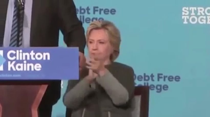 Το συμπέρασμα αυτό προέκυψε από το γεγονός πως κατά τη διάρκεια της ομιλίας του πρώην αντιπάλου της, Μπέρνι Σάντερς, στο Πανεπιστήμιο του New Hampshire, ο φακός συνέλαβε την υποψήφια για την αμερικανική προεδρία να χειροκροτάει μηχανικά, όταν εκείνος μιλούσε για λογαριασμό της, σαν να ήταν ρομπότ.